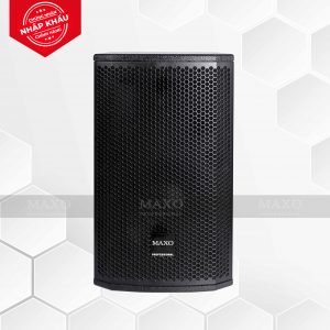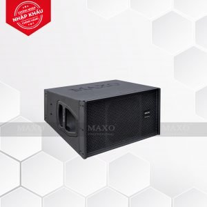 Phía trên có gắn logo MAXO. Vì là loa sub đôi nên Logo được đặt giữa. Phân chia mặt trước của loa thành hai bên, có 2 loa Bass 5 tấc có từ 260mm, coil 120mm.